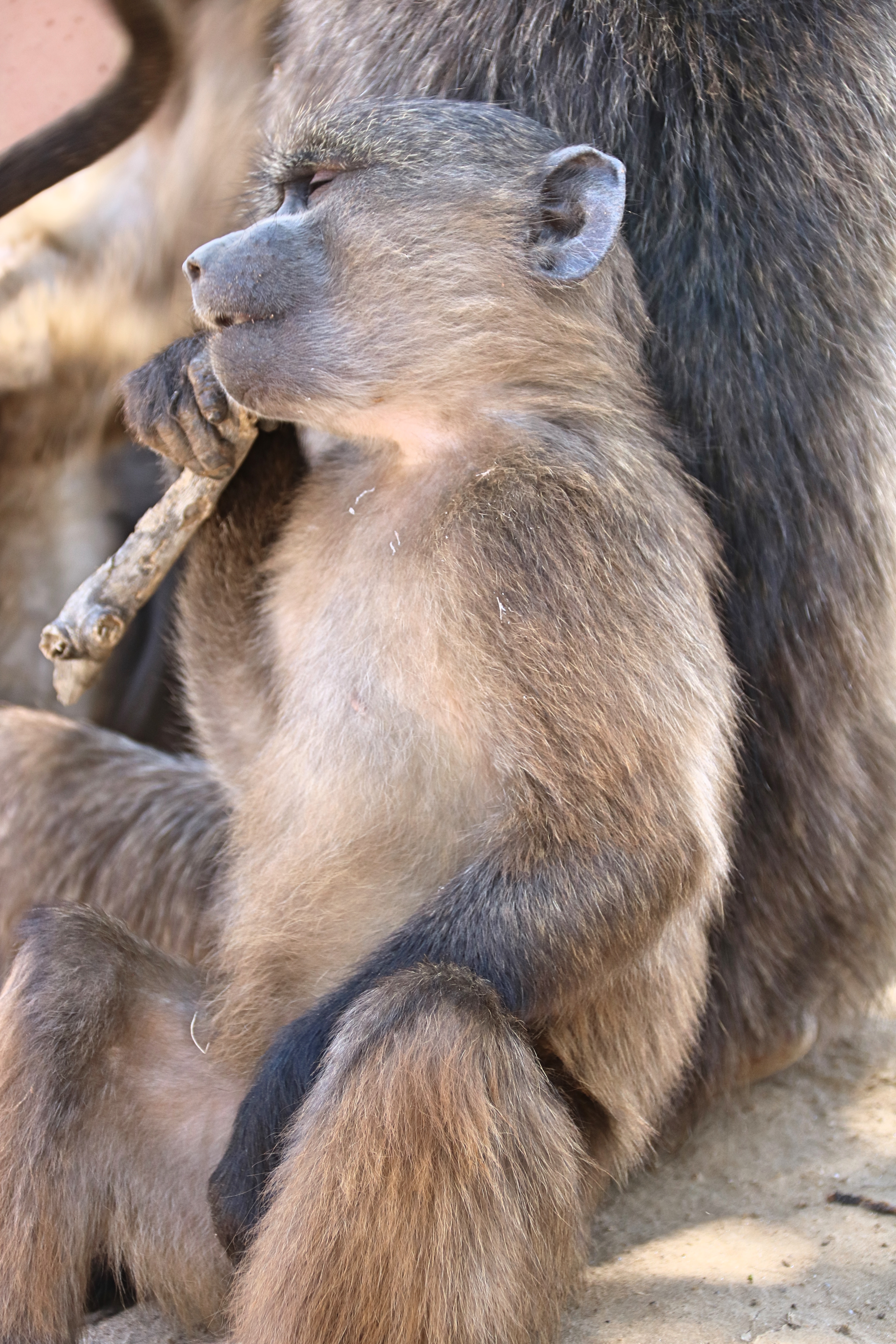I eased a bit more learning more about the Baboons and let my guard down as I squatted next to a care giver cuddling with a baboon. Within a few minutes I felt a cold hand up my shirt touching my back as I turned around to see a new “friend” grooming me as others looked on in absolute amusement.
